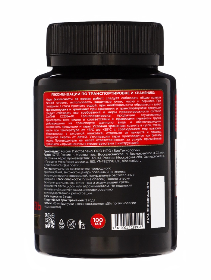 Экологически безопасен для человека, животных и окружающей среды. Не является пестицидом или агрохимикатом.