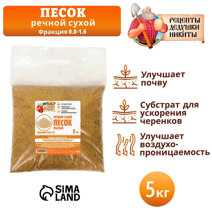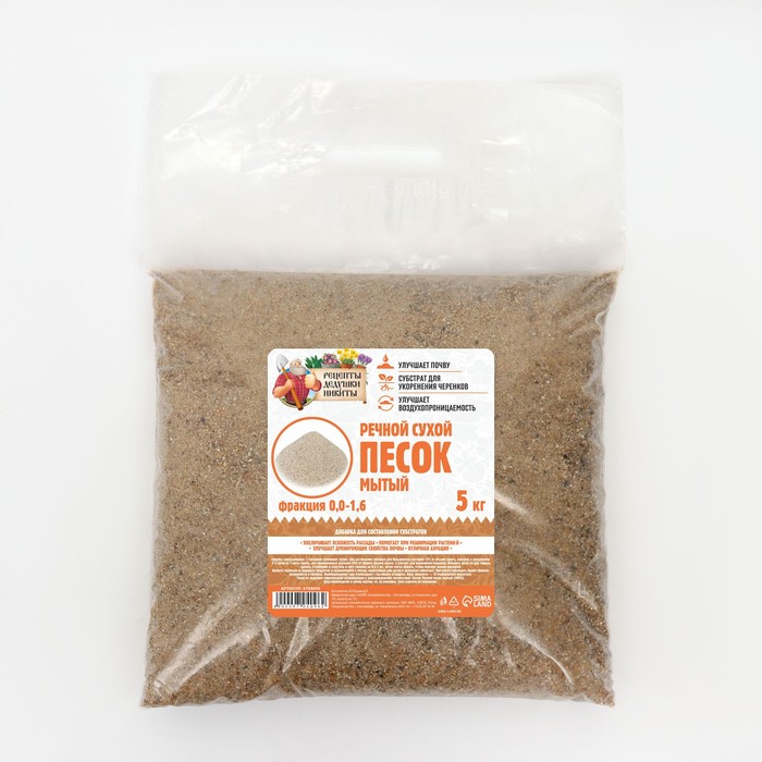 Речной песок "Рецепты дедушки Никиты", сухой, фр 0,0-1,6, 5 кг