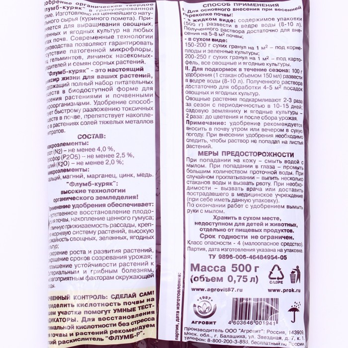 Гранулы для восстановления плодородия почвы «Флумб куряк», 500 г