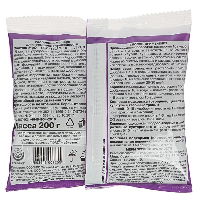 Удобрение «Магбор», для повышения урожайности, 200 г