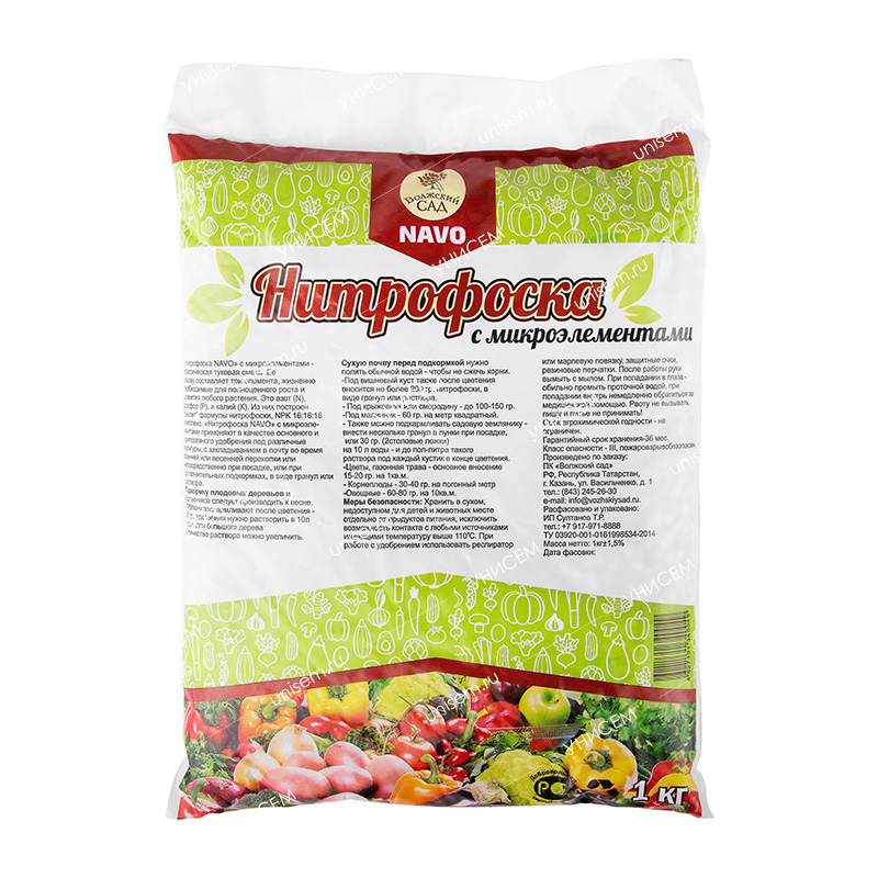 Волжский сад Нитрофоска– классическая минеральная туковая смесь. В её основе лежат 3 основных элемента, необходимые для полноценного роста и развития любого растения: азот (N), фосфор (Р), и калий (К). Применяется в качестве основного и припосевного удобрения под различные культуры, с закладыванием в почву во время осенней или весенней перекопки, непосредственно при посадке или при дополнительных подкормках. Препарат хорошо растворяется в воде, имеет сбалансированный состав, улучшает качество почвы, активизирует корневую систему и способствует формированию зеленой массы.• Удобрение содержит полный комплекс веществ, необходимых для полноценного и сбалансированного питания растений.