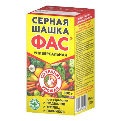 Теплицы, парники, оранжереи окуривать до посадки культур, а также после сбора урожая. Норма расхода: 60г/см3 (1 шашка на 5-10м3).