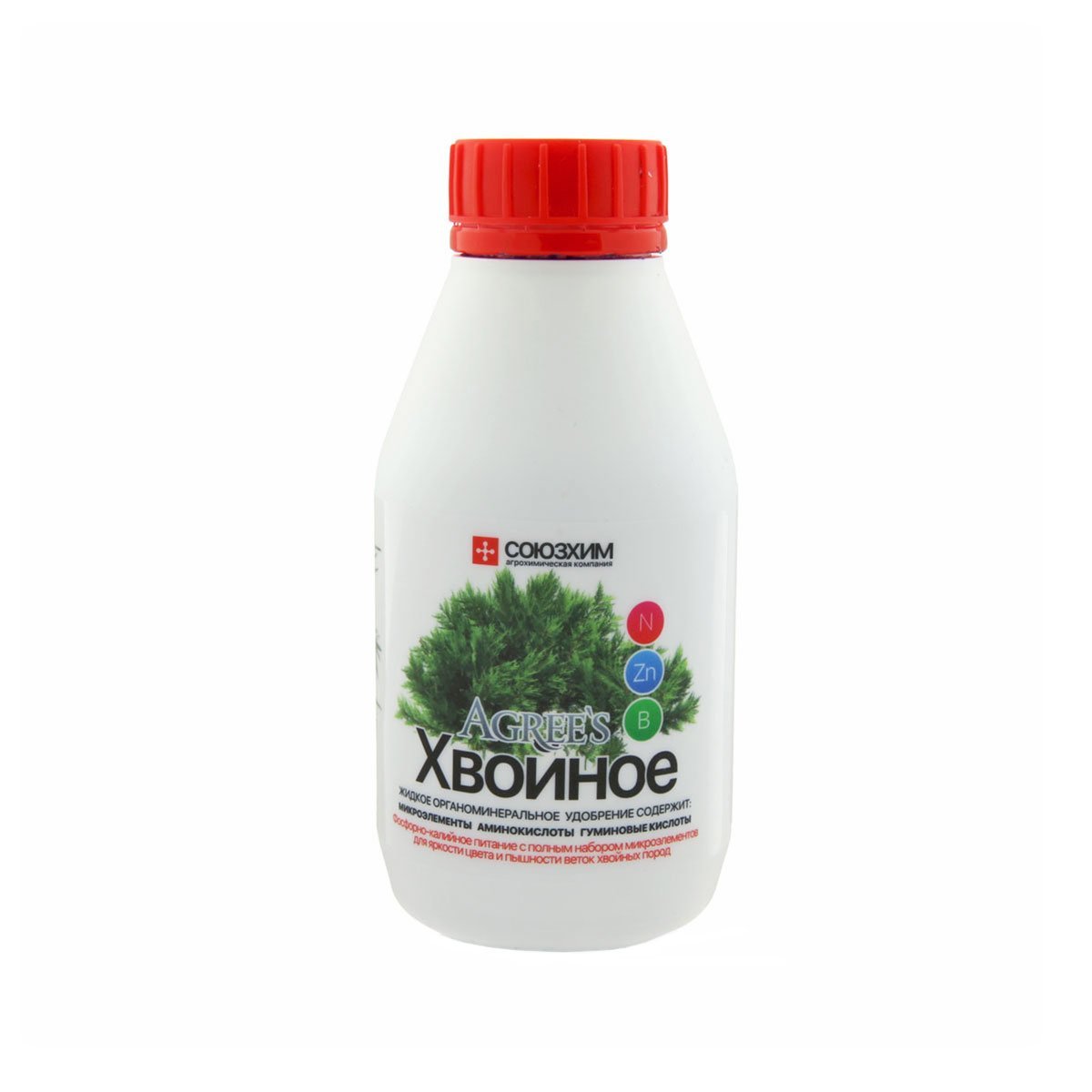 AGREE'S Хвойное– жидкое органоминеральное удобрение с микроэлементами, аминокислотами и гуминовыми кислотами. Применяется для подкормок всех хвойных пород. Препарат обеспечивает Фосфорно-калийное питание с полным набором микроэлементов для яркости цвета и пышности веток хвойных пород.• Удобрение содержит полный комплекс веществ, необходимых для полноценного и сбалансированного питания растений.