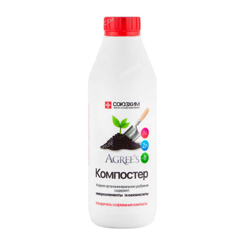 AGREE'S Компостер –жидкое органоминеральное удобрение с микроэлементами, аминокислотами и гуминовыми кислотами. Применяется в качестве корневой подкормки. Препарат способствует перегниванию скошенной травы и других отходов растительного происхождения в компост на дачных и приусадебных участках, ускоряет созревание компоста.• Удобрение содержит полный комплекс веществ, необходимых для полноценного и сбалансированного питания растений.