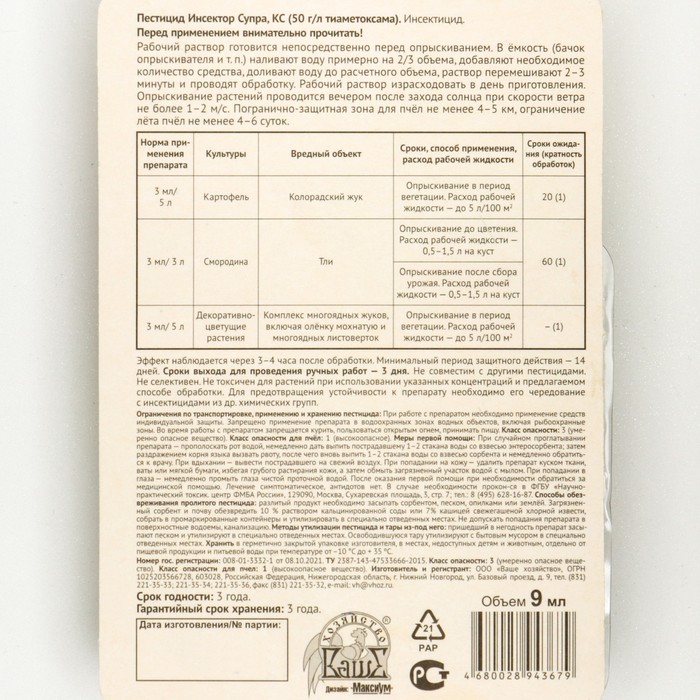 Вид средства: Инсектицид