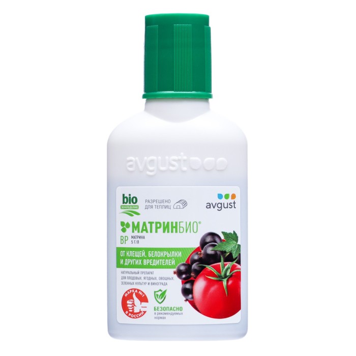 МатринБио - уникальный на российском рынке натуральный биопрепарат для защиты цветочных культур и комнатных растений от клещей и других вредителей. Высокоэффективен против клещей (войлочный клещ (зудень), паутинный клещ и другие), тепличной белокрылки, тли, трипсов, цикадок, совок, гроздевой листовёртки и прочих.