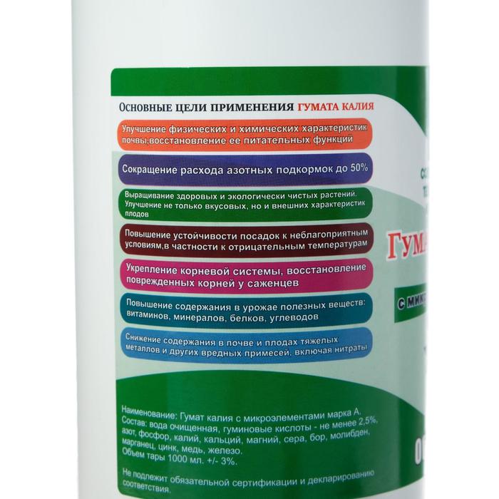 Состав: Содержит гуминовые и фульвокислоты, калий и комплекс микроэлементов (железо, бор, марганец, медь, цинк).