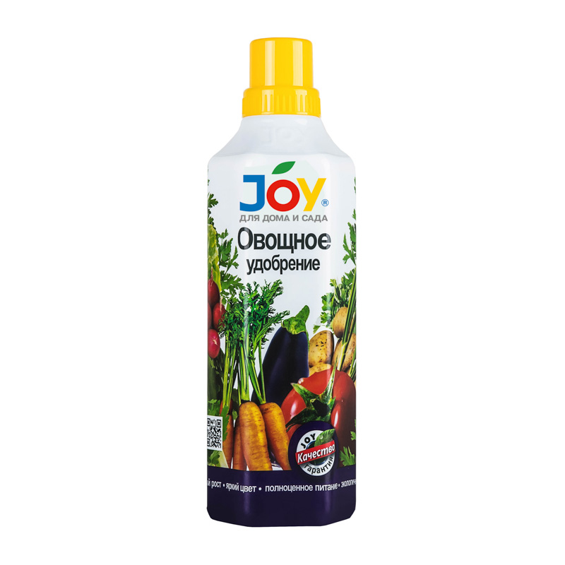 JOY Овощное– жидкое минеральное удобрение с микроэлементами. Применяется для корневой и внекорневой подкормки овощных культур (картофель, капуста, томаты, огурцы, кабачки, перцы, баклажаны, корнеплоды). Препарат обеспечивает активный рост и гармоничное развитие растений, снижает стресс растений при пересадке, при обработке пестицидами, при колебаниях температур, повышает урожайность до 30%, сохраняет и улучшает плодородие почвы.• Удобрение содержит полный комплекс веществ, необходимых для полноценного и сбалансированного питания растений.