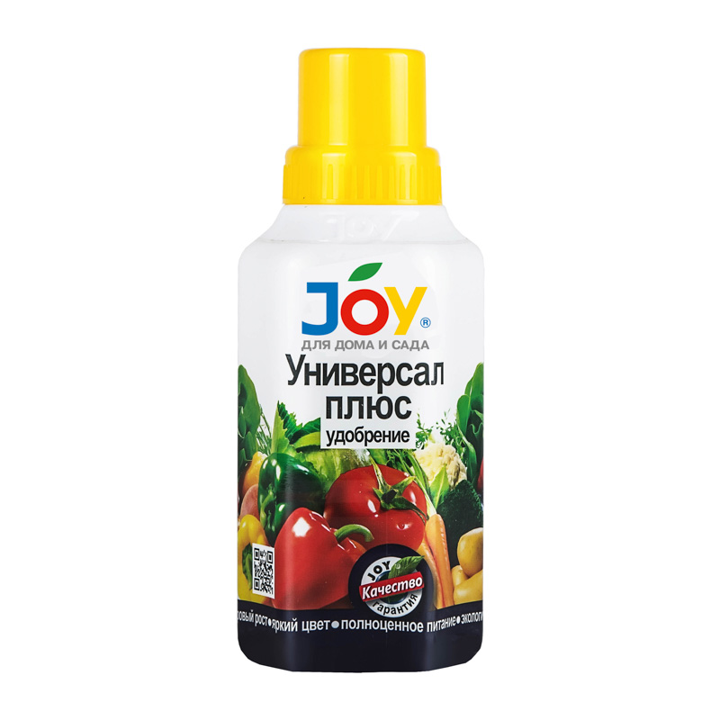 JOY Универсал плюс– жидкое минеральное удобрение с высоким содержанием гуминовых и фульвовых кислот. Применяется для корневой и внекорневой подкормки овощных, плодово-ягодных культур, газонные травы. Препарат ускоряет рост и развитие растений, повышает урожайность до 30%, снижает количество нитратов в продуктах, улучшает вкусовые качества плодов, сохраняет и улучшает плодородие почвы, повышает устойчивость к заболеваниям и неблагоприятным факторам окружающей среды.• Удобрение содержит полный комплекс веществ, необходимых для полноценного и сбалансированного питания растений.