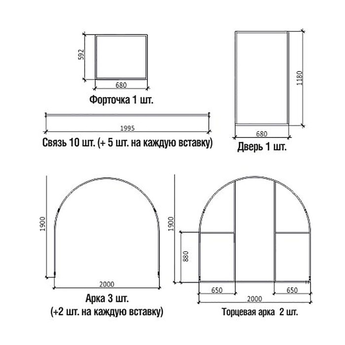 Теплица (каркас) «Оптима III-Цинк», 4 × 2 × 1,9 м, оцинкованная сталь, профиль 20 × 20 мм, без поликарбоната