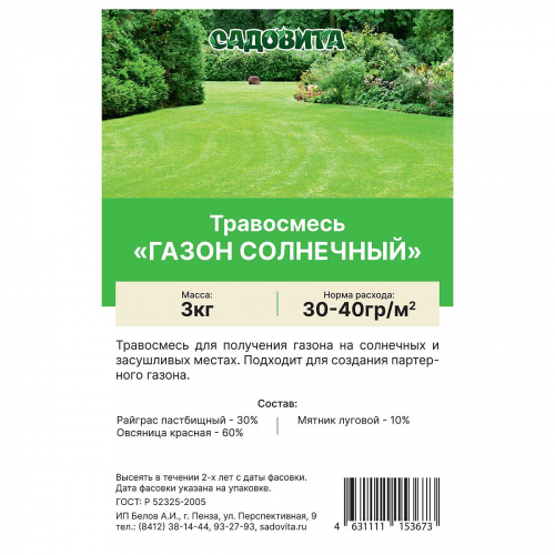 Травосмесь "Газон солнечный" 3кг СВТ (150)