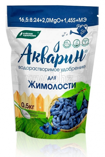 Акварин для Жимолости - водорастворимое удобрение, в состав которого входит азот, фосфор, калий, магний, сера и микроэлементы – железо, цинк, марганец, медь в хелатной форме, а бор и молибден – в минеральной. Благодаря кислой реакции (рН) удобрения, оно легко растворяется в холодной воде и более эффективно усваивается корневой системой или листовой поверхностью растений.