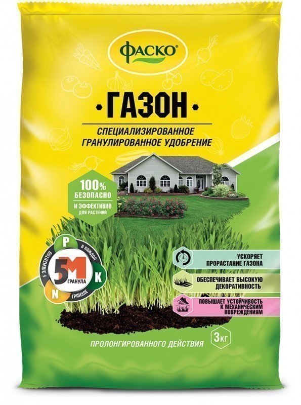 Удобрение сухое Фаско 5М минеральное для Газона гранулированное – минеральное удобрение комплексного действия. Содержит необходимый сбалансированный набор питательных веществ, который благоприятно влияет на рост и развитие растений, укрепляет иммунитет. Сформировано в гранулу, что ускоряет процесс внесения в почву. В каждой грануле содержится 5 питательных макро и микроэлементов. Что обеспечивает полноценное питание растений.