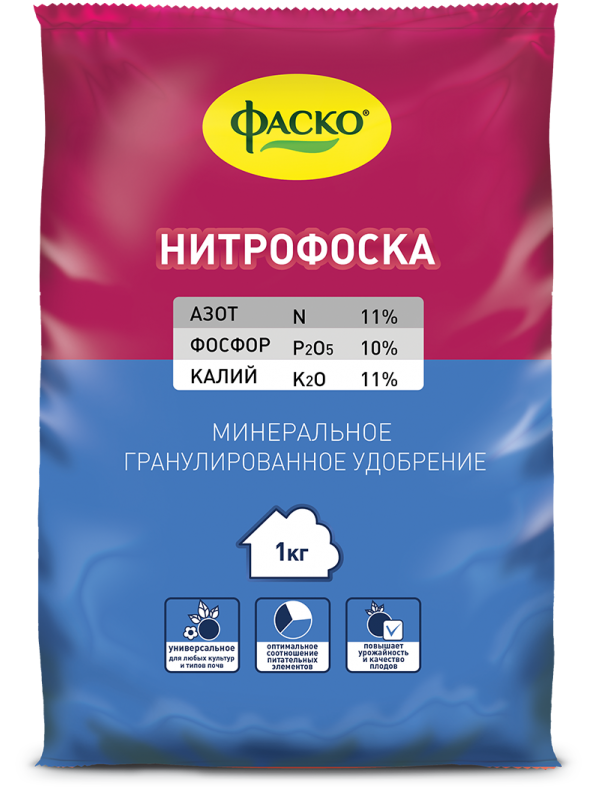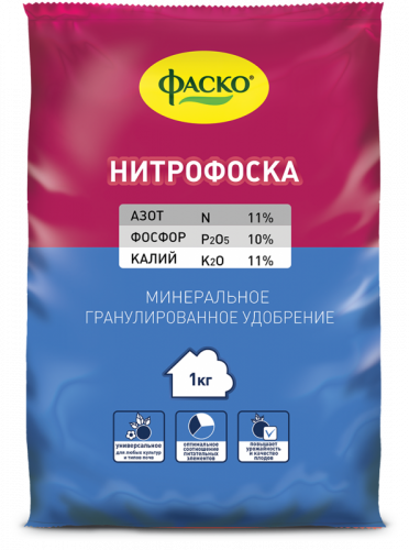 Удобрение сухое Фаско Нитрофоска минеральное – универсальная добавка, которая используется для подкормки растений на всех типах почв. Благодаря питательному составу, подкормка обеспечивает растения всеми необходимыми веществами, помогает перенести неблагоприятные погодно-климатические условия. Удобрение способствует интенсивному и полноценному развитию и обильному укреплению, цветению растений, повышают урожайность. А также, создает развитие корневой системы и зеленой массы.