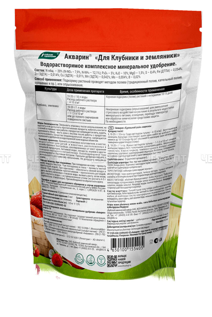 Удобрение АКВАРИН для КЛУБНИКИ и ЗЕМЛЯНИКИ водорастворимое для подкормки растений поливом или опрыскиванием 500 гр арт. 40256, 431372 [12] БУЙ