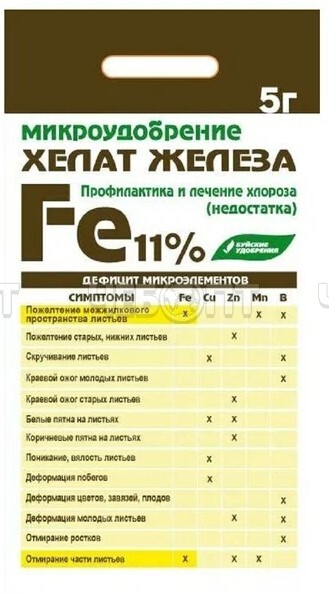 Удобрение микро ХЕЛАТ ЖЕЛЕЗА для полива и опрыскивания в качестве профилактики недостатка (хлороза) железа 5 г. арт. 431267 [30] БУЙ