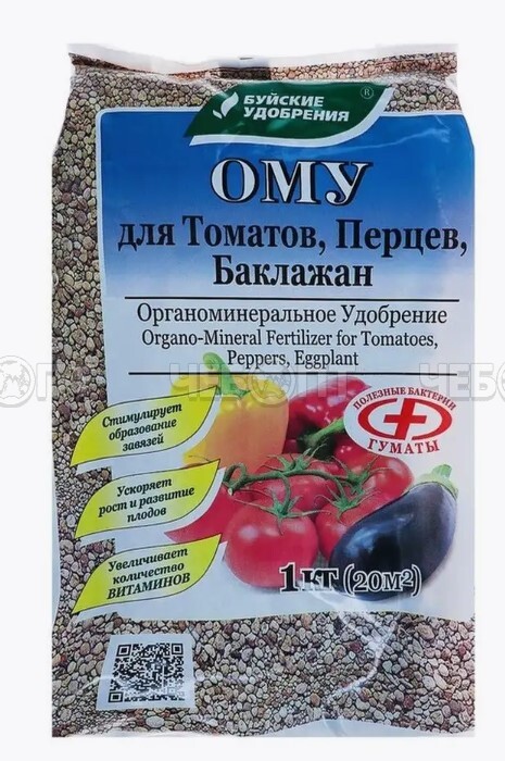 Удобрение ОМУ ДЛЯ ТОМАТОВ, ПЕРЦЕВ, БАКЛАЖАНОВ комплексное гранулированное органоминеральное, 1 кг арт. 431180, 11200 [30] БУЙ