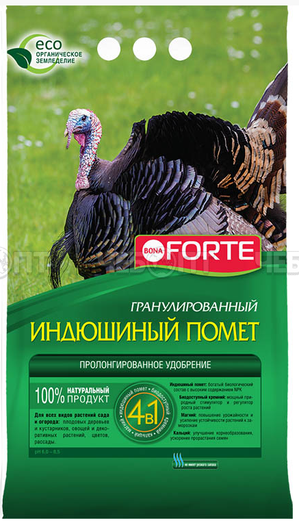 Сухое удобрение органическое BONA FORTE ИНДЮШИНЫЙ ПОМЕТ С ЦЕОЛИТОМ, гранулированное, обогащенное пакет 2 кг [10] ГАРДЕН