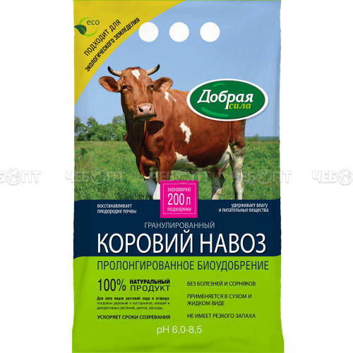 Сухое удобрение органическое ДОБРАЯ СИЛА КОРОВЬЕ гранулированное, обогащенное 2 кг арт. DS22100121 [10] ГАРДЕН