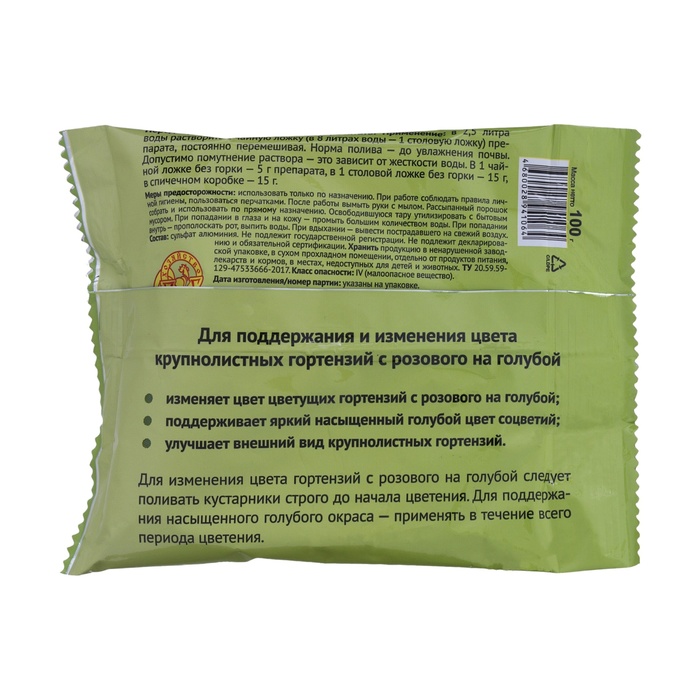Удобрение минеральное Цветалон для изменения цвета гортензий, 100 г