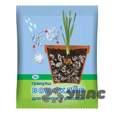 При внесении в почву биологически и экологически безопасен, не выделяет вредных веществ, не угнетает растения и полезную микрофлору. «Водохлеб» способен поглощать и удерживать в набухшем состоянии большое количество воды (200-400 мл на 1 г препарата) с растворенными в ней питательными веществами. При этом практически вся вода, накопленная в гранулах, доступна растениям и легко извлекается корнями вместе с элементами питания. Поглощенная частицами «Водохлеба» влага не изменяет своих свойств, не дренирует в нижние почвенные и подпочвенные слои и не испаряется. «Водохлеб» обеспечивает оптимальный водный режим для растений, забирая избыток воды при поливах и затяжных дождях и отдавая влагу растениям при подсыхании почвы.