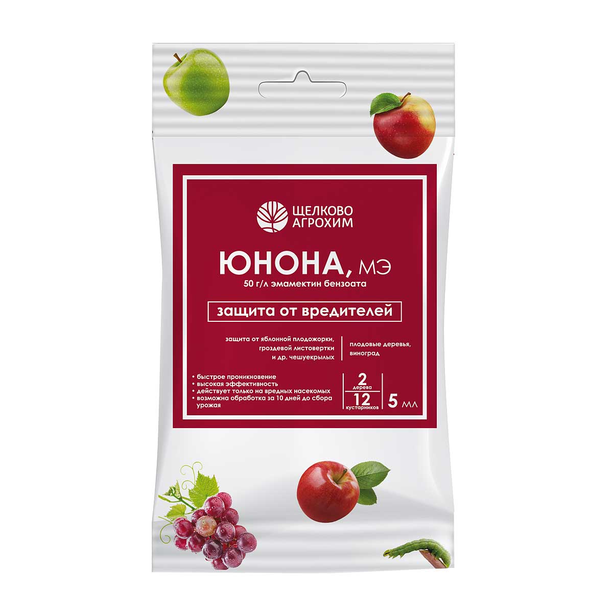 Инсектицид контактно-кишечного действия для защиты садов и виноградников от чешуекрылых вредителей. Действующее вещество – 50 г/л эмамектина бензоата. Препарат обладает высокой эффективностью инсектицида за счёт инновационной формуляции – микроэмульсии. Инсектицид быстро проникает и равномерно распределяет препарат внутри листа, имеет повышенную трансламинарную активность и короткий период ожидания. Вещество воздействует на два участка центральной нервной системы насекомого: связывает рецепторы γ-аминомасляной кислоты в синапсе и h-рецепторы в мышечных клетках. Это приводит к расслаблению мышц (они не могут сокращаться), через 1-4 часа гусеницы перестают питаться и насекомое в течении 1-4 суток погибает. Защитное действие продолжается 10-15 суток.