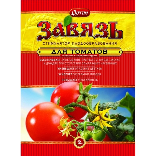 стимулирует образование завязей и их рост даже при неблагоприятных погодных условиях и отсутствии опыляющих насекомых; - уменьшает опадение цветков и завязей;