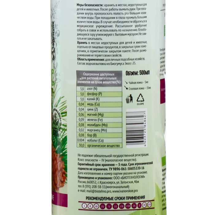 Органическое удобрение Биогумус «Садовые рецепты» для хвойных культур, 0.5 л