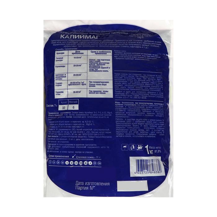 Удобрения типа «Калимаг» рекомендованы для использования под все выращиваемые культуры, деревья, ягодные и декоративные кустарники, а так же для их корневой подкормки. Для многих культур - картофеля, подсолнечника, свеклы, капусты, овса и рапса (как зимних кормов), силосных культур (смешанного посева «горох-овёс-подсолнечник») - применение Удобрения типа «Калимаг» предпочтительнее хлористого калия для повышения и урожайности, и пищевой ценности продукции. Растения подсолнечника и картофеля не накапливают натрий, а для овса, кормовой свеклы и капусты примесь натрия является полезной, присутствие магния значительно повышает пищевую ценность. Накопление хлор-иона в почве значительно меньше, чем при использовании низкопроцентных хлорсодержащих калийных солей.