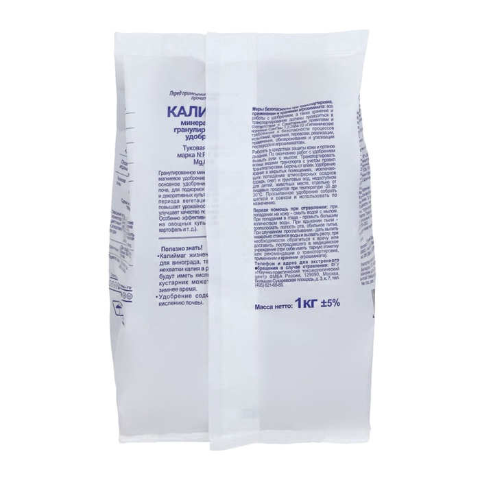 Удобрение типа «Калимаг» - это концентрированное минеральное калийно-магниевое удобрение, по химическому составу представляет собой смесь хлоридов калия, магния, кальция и натрия. Производится из лангбейнита (K2SО4•2MgSО4) после размалывания минерала и удаления из него NaCl выщелачиванием. Средние массовые доли питательных элементов в Калимаге - хлорида калия KCL 65 - 75%, хлорида калия К2О 41 – 47%, хлорида магния 0,1 - 5%, хлорида кальция 0,3 - 3%.Представляет собой мелкие гранулы или порошок различных оттенков от белого до розового и серого цвета. Хорошо растворим в воде, не слеживается. По эффективности применения близок к калимагнезии.