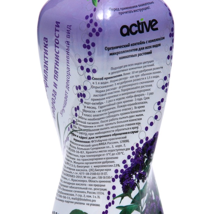 Удобрение органоминеральный коктейль Active Цветочное, для всех комнатных растений, 0,5 л