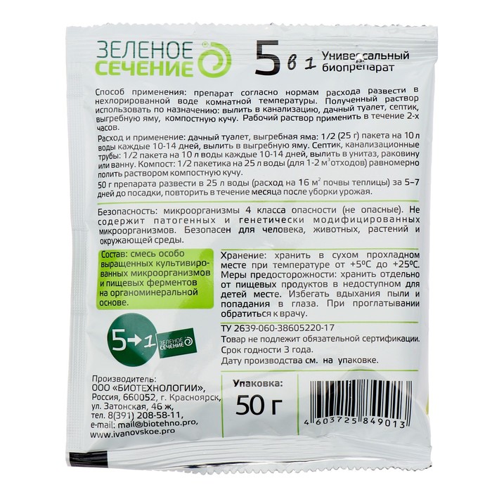 Универсальный биопрепарат 5 в1, для теплиц, септиков, компостов, дачных туалетов, 50 г