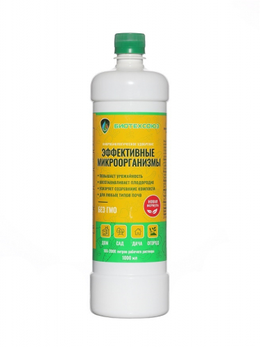 ЭФФЕКТИВНЫЕ МИКРООРГАНИЗМЫ БИОТЕХСОЮЗ предназначено для повышения плодородия почв и выращивания экологически чистых продуктов питания.