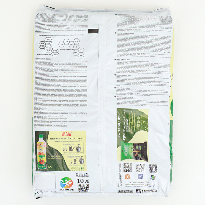 Состав: верховой торф различной степени разложения, биогумус, песок намывной, агроперлит, мука известняковая (доломитовая), комплексное минеральное удобрение, сульфат магния, сульфат калия.