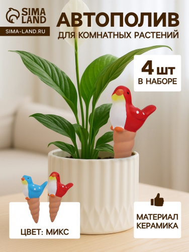 Автополив для комнатных растений «Грибочек», 16.5×7 см, керамика, набор 4 шт., МИКС