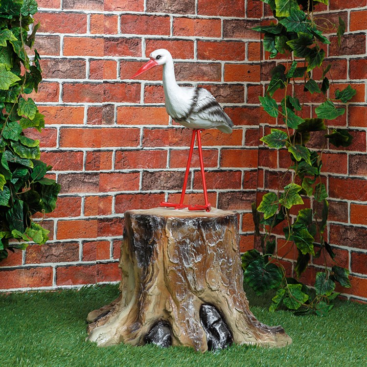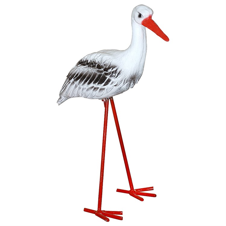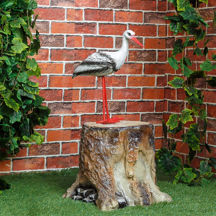 Садовая фигура Аист. Фигурка реалистичная благодаря своей естественной окраске. Фигура размещается на дачном участке методом установки в грунт металлических кольев на лапках птицы.