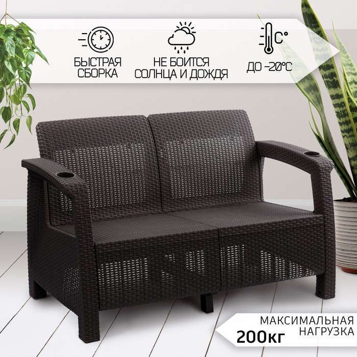 Диван «Ротанг» двухместный, 127×70×79 см, мокко, с подстаканниками