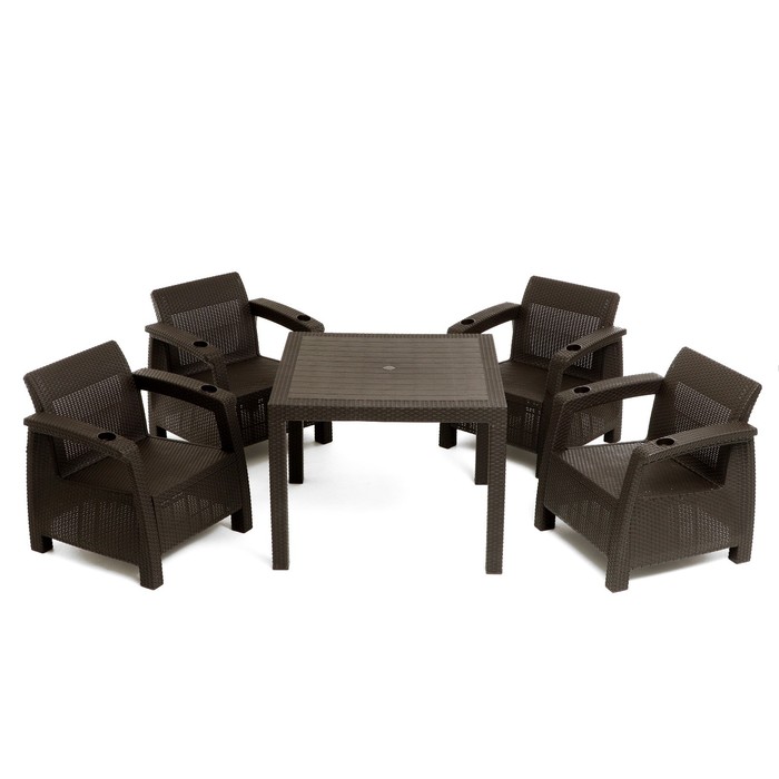Набор садовой мебели «Ротанг», 4 кресла, стол, коричневый