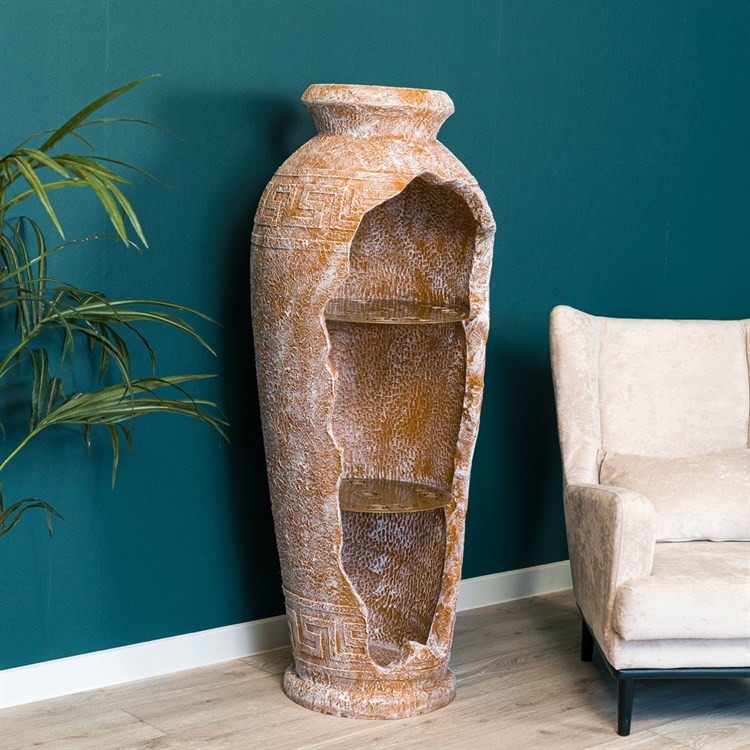 Материал изготовления: амфора выполнена из прочного и долговечного стеклопластика; полки - из металла