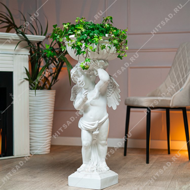 Скульптура изображает ангела, нежно держащего вазу, что символизирует гармонию и заботу о природе. Каждый элемент, от выразительного лица до детализированной текстуры, выполнен с вниманием к мелочам, что делает эту работу настоящим произведением искусства.