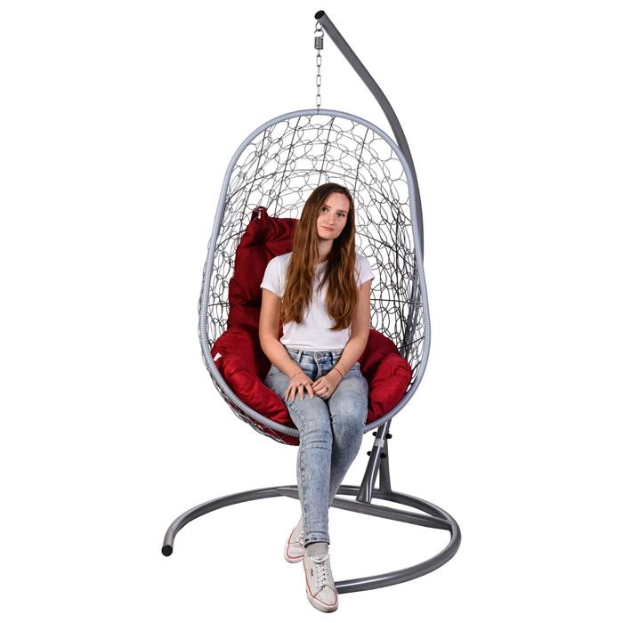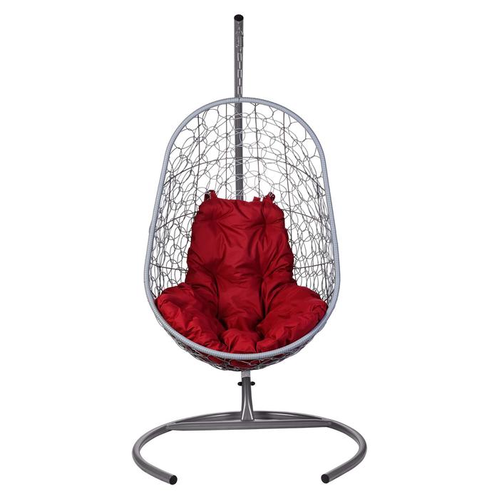 Подвесное кресло - кокон Easy, с искусственным ротангом, красная подушка, со стойкой, серое