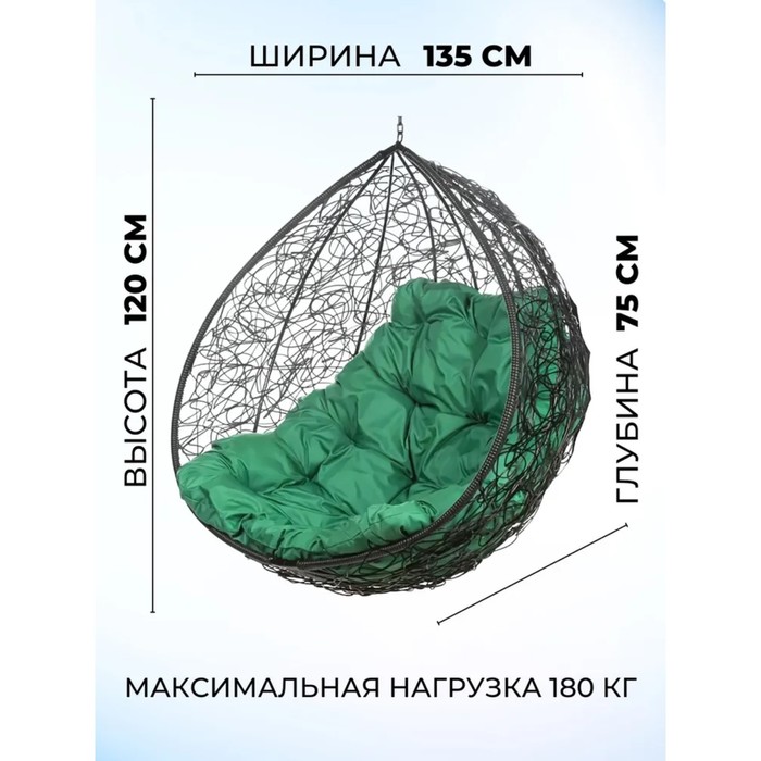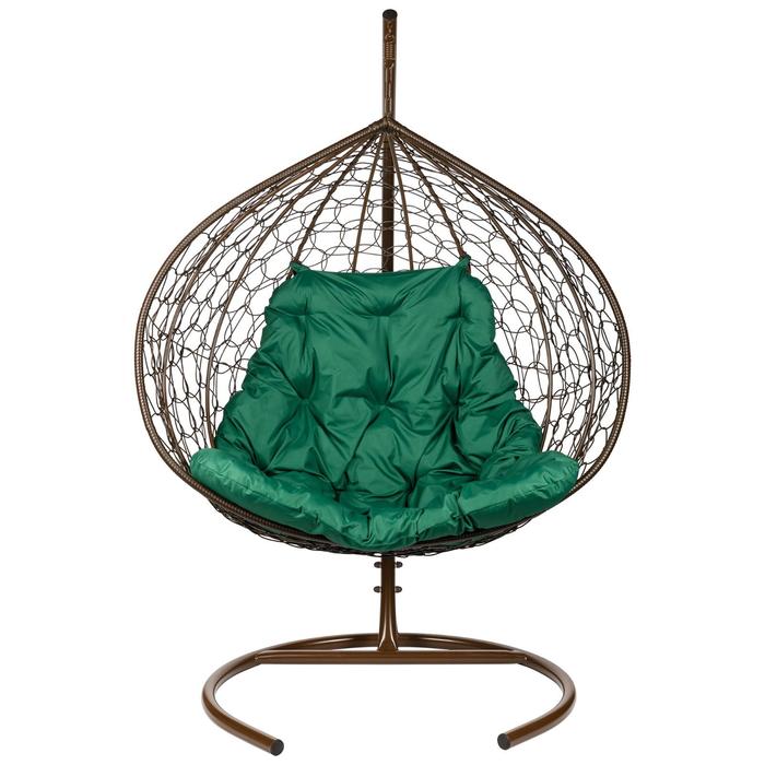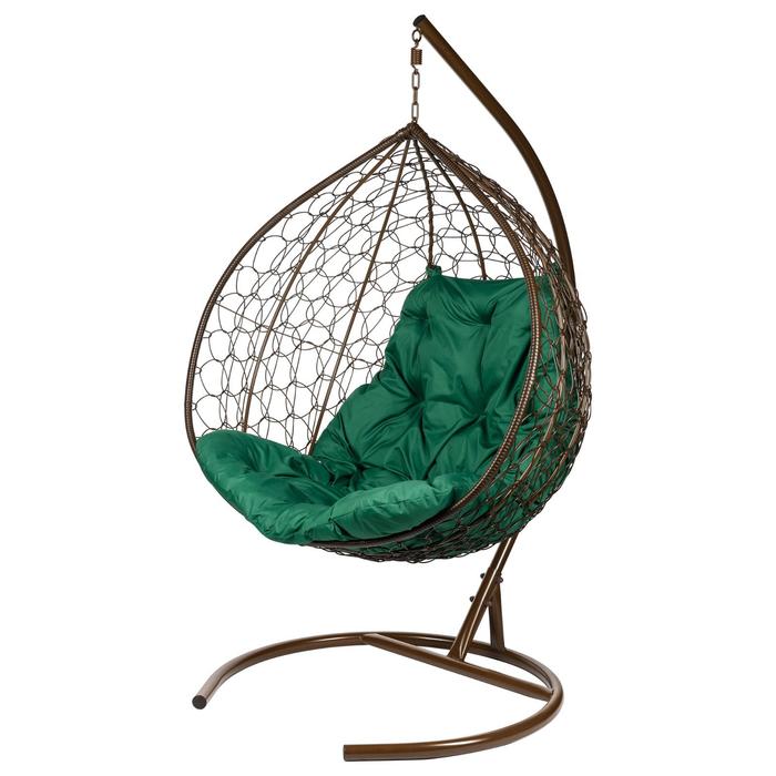 Подвесное кресло - кокон Gemini, 135×70×195 см, металлическое, коричневое, с зелёной подушкой