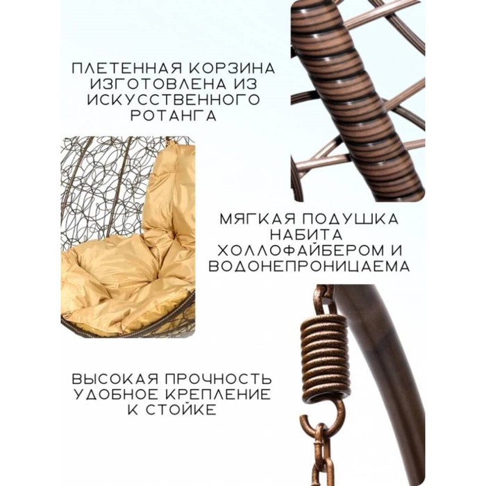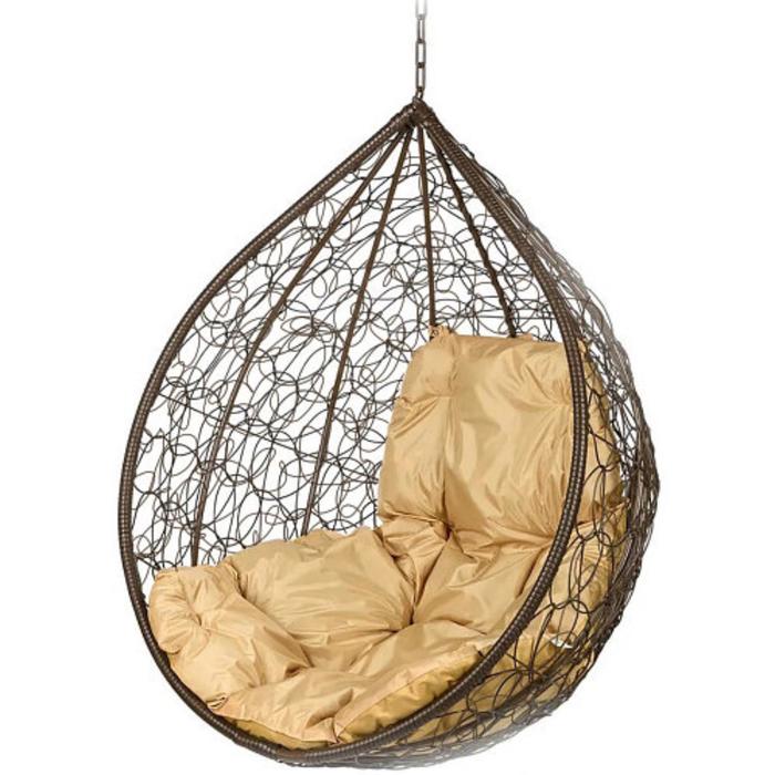 Подвесное кресло - кокон «Тропика», с искусственным ротангом, бежевая подушка, коричневое