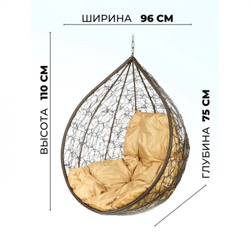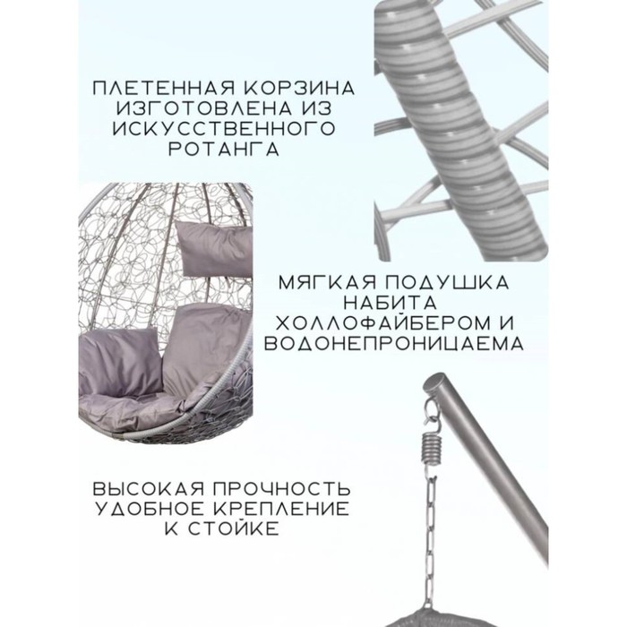 Подвесное кресло - кокон «Тропика», с искусственным ротангом, бежевая подушка, серое