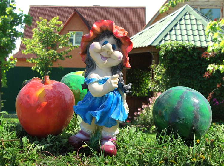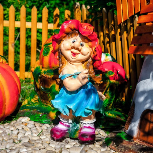 Садовая фигурка девочки кокетки. Изготовлена из полистоуна. Хорошо сочетается в комплекте с гномиками.