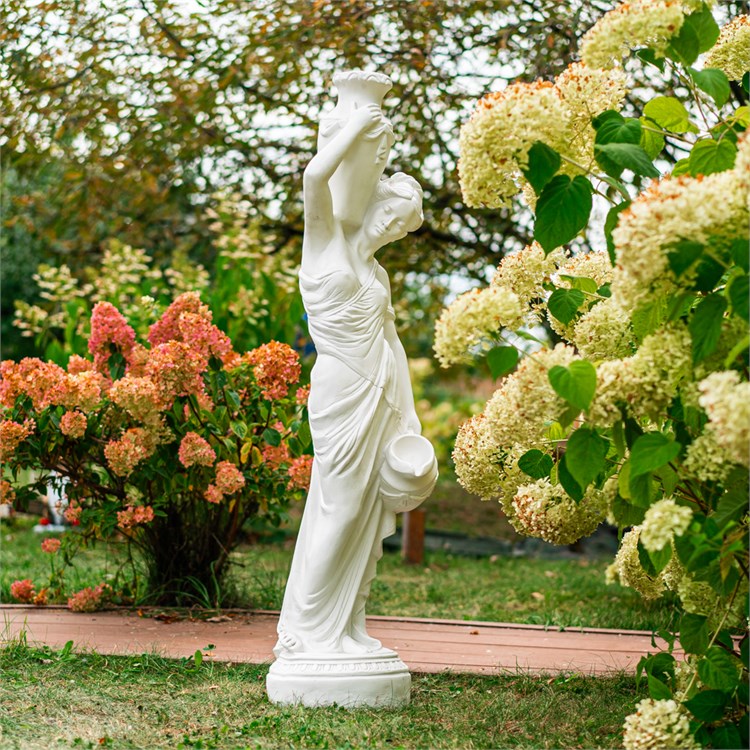 Скульптура изображает грациозную девушку, держащую кувшин, что символизирует не только красоту, но и изобилие. Каждый элемент, от плавных линий тела до детализированного выражения лица, выполнен с мастерством и вниманием к деталям, что делает эту работу настоящим произведением искусства.