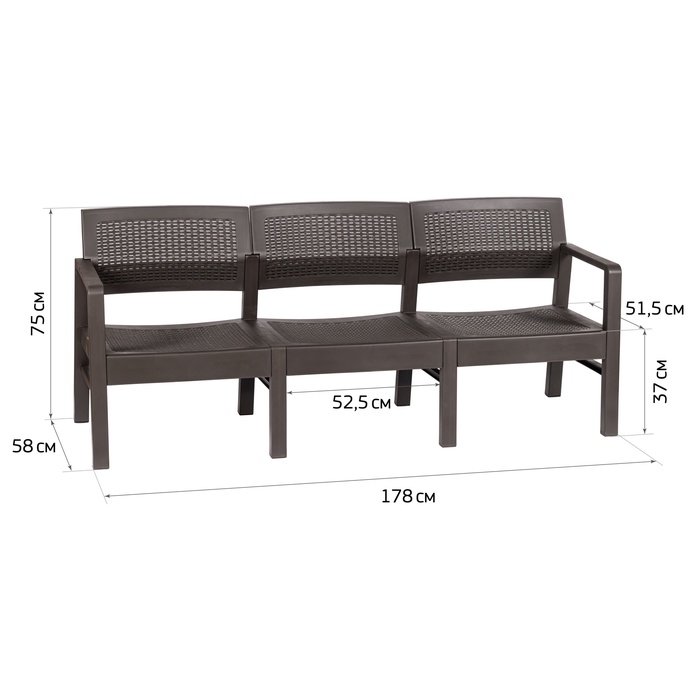 Диван садовый «Ротанг», пластик, 58×178×75 см, трёхместный, мокко