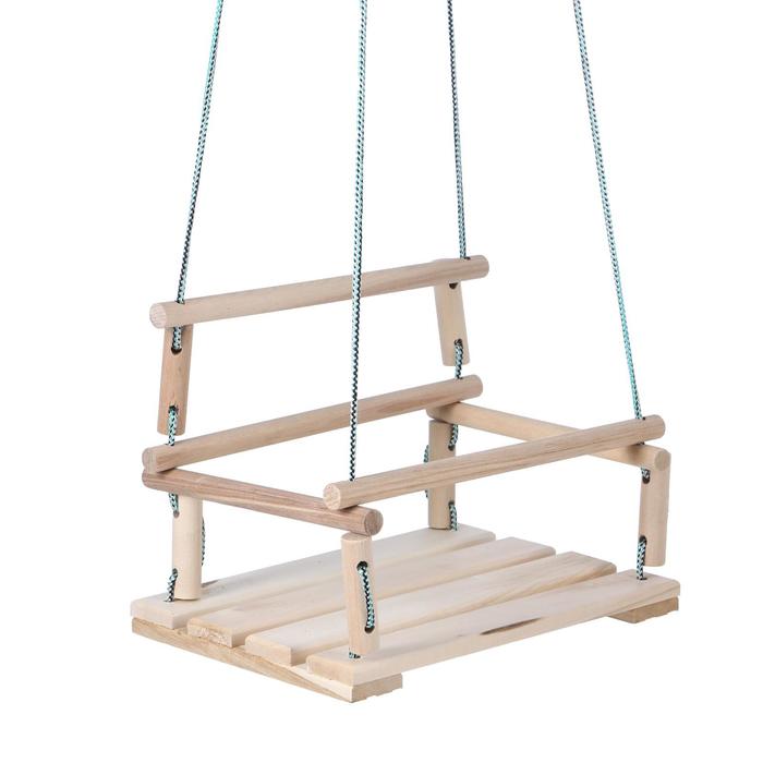 * Изделие выполнено из липы, которая обладает уникальным свойством перенимать температуру тела — даже если качели находятся на улице под прямыми солнечными лучами, ваш ребёнок не обожжётся.