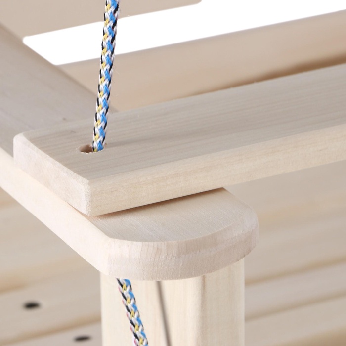 * Изделие изготовлено из дерева — это экологически чистый и безопасный материал. Даже если качели находятся на улице под прямыми солнечными лучами, ваш ребёнок не обожжётся.
