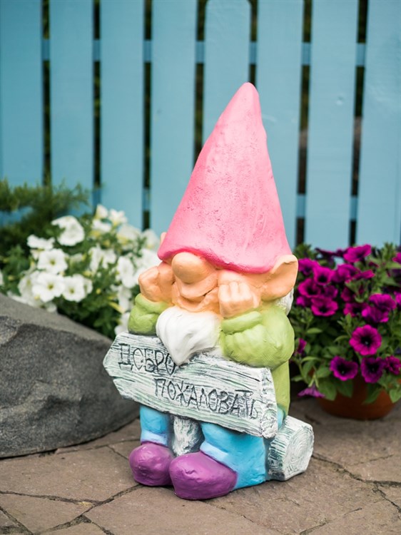Садовая фигура Гном выполнена из прочного материала - полистоуна. Такую фигурку можно разместить не только в саду, но и на детской площадке. В комплекте с другими садовыми фигурами гномов можно создать целую композицию.